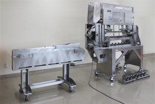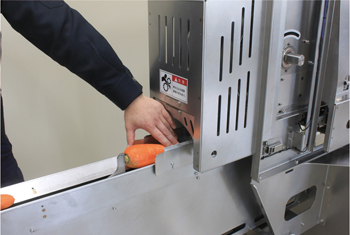 カット工程入口部には安全機構が施されています。誤って手を入れようとすると自動で運転を停止します。 |