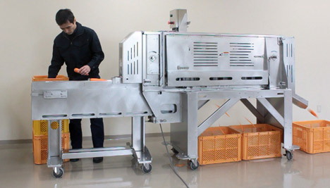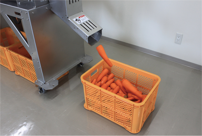 コンベアに人参を置くだけ。毎時最大2,400本の高速処理!