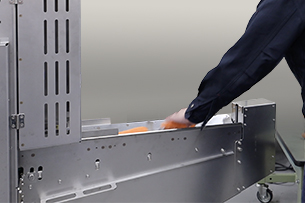 左右の扉が上部に開き固定できますので、刃物の交換や掃除が楽に行えます。 |