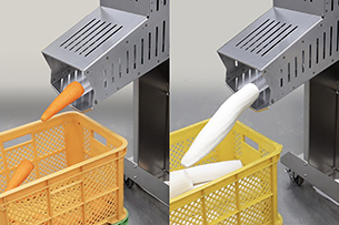 人参と大根の皮むきが1台で兼用できます。人参用・大根用の切り替えは簡単です。 |