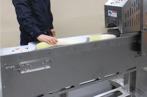 スイッチを入れ、コンベアに大根を置くだけの簡単操作です。 |