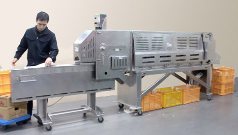 コンベアに大根を置くだけ。毎時最大1,800本の高速処理!
