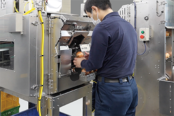 両端切り・皮むき作業を毎時3,000個の高速で処理します。
