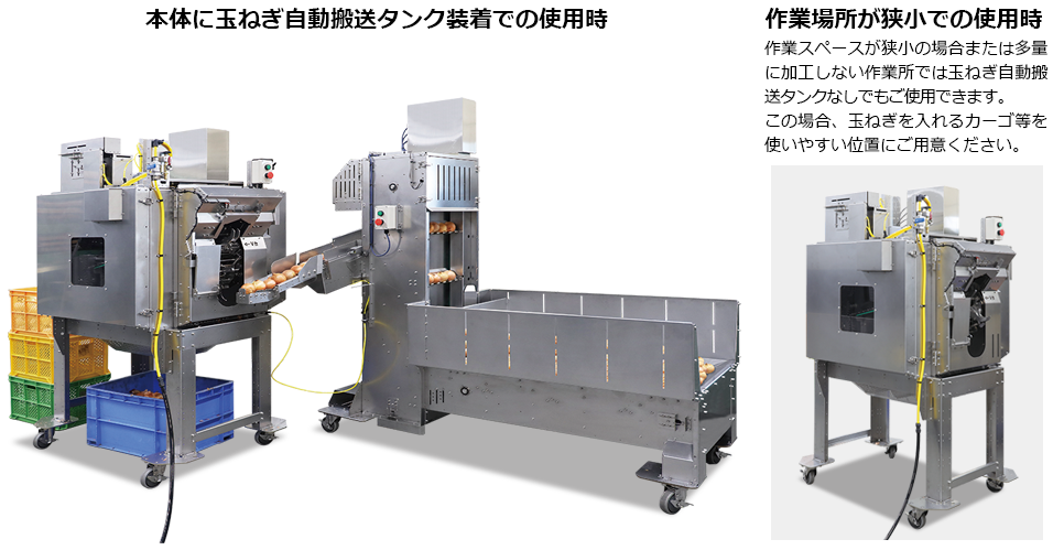 玉ねぎを材料自動搬送タンクに入れるだけで自動搬送します。