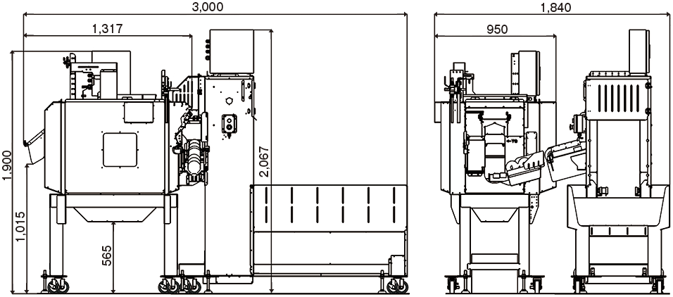 自動搬送タンク使用時:幅1,840×奥行3,000×高さ2,067